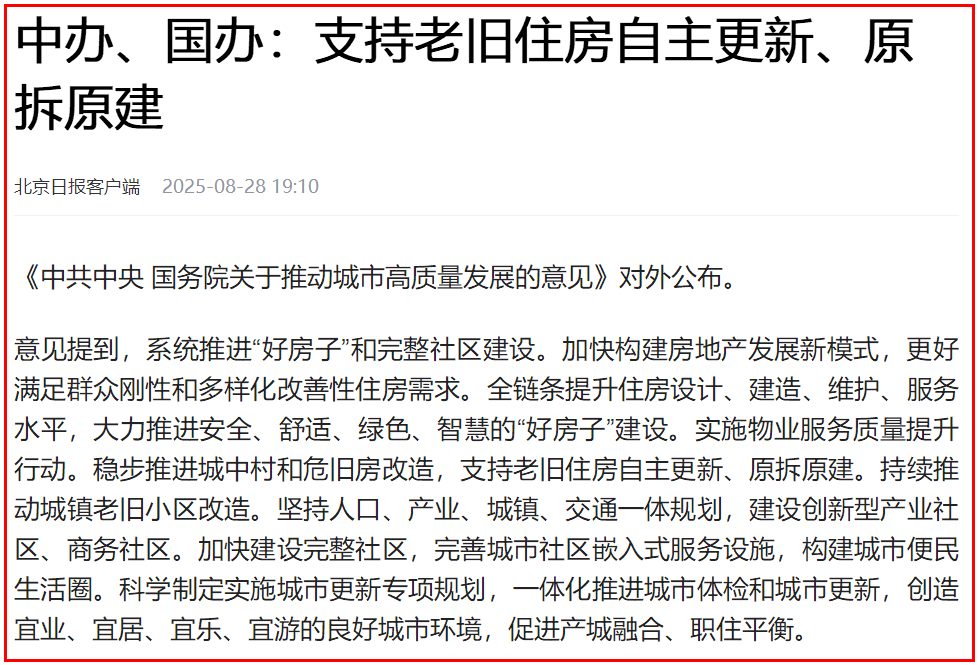 开云-中共中央、国务院:支持老旧住房自主更新、原拆原建!